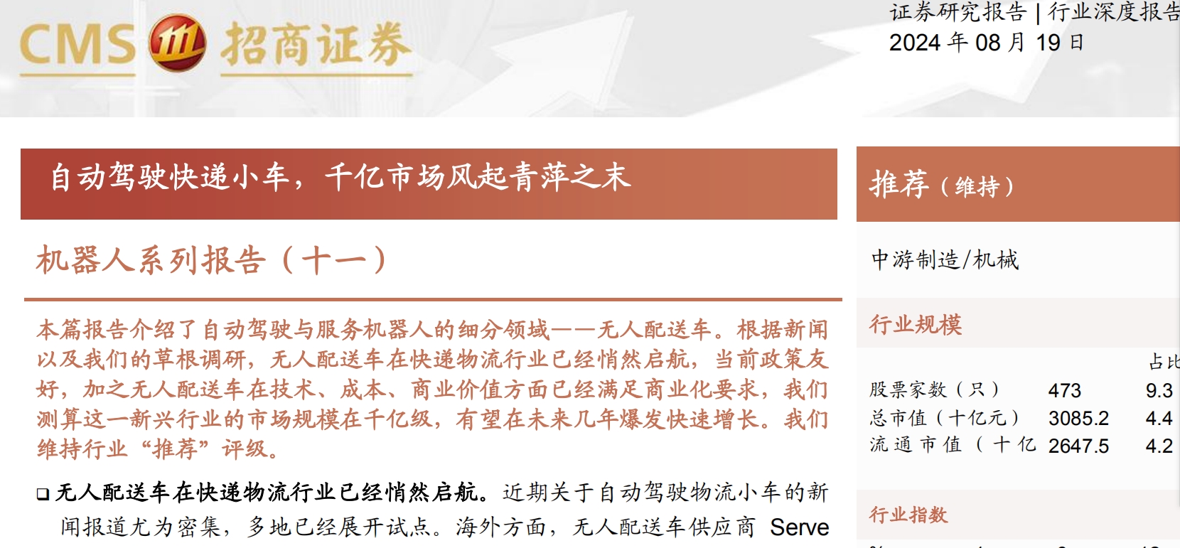 无人配送车在快递物流行业已经悄然启航。近期关于自动驾驶物流小车的新闻报道尤为密集,多地已经展开试点。海外方面,无人配送车供应商 Serve