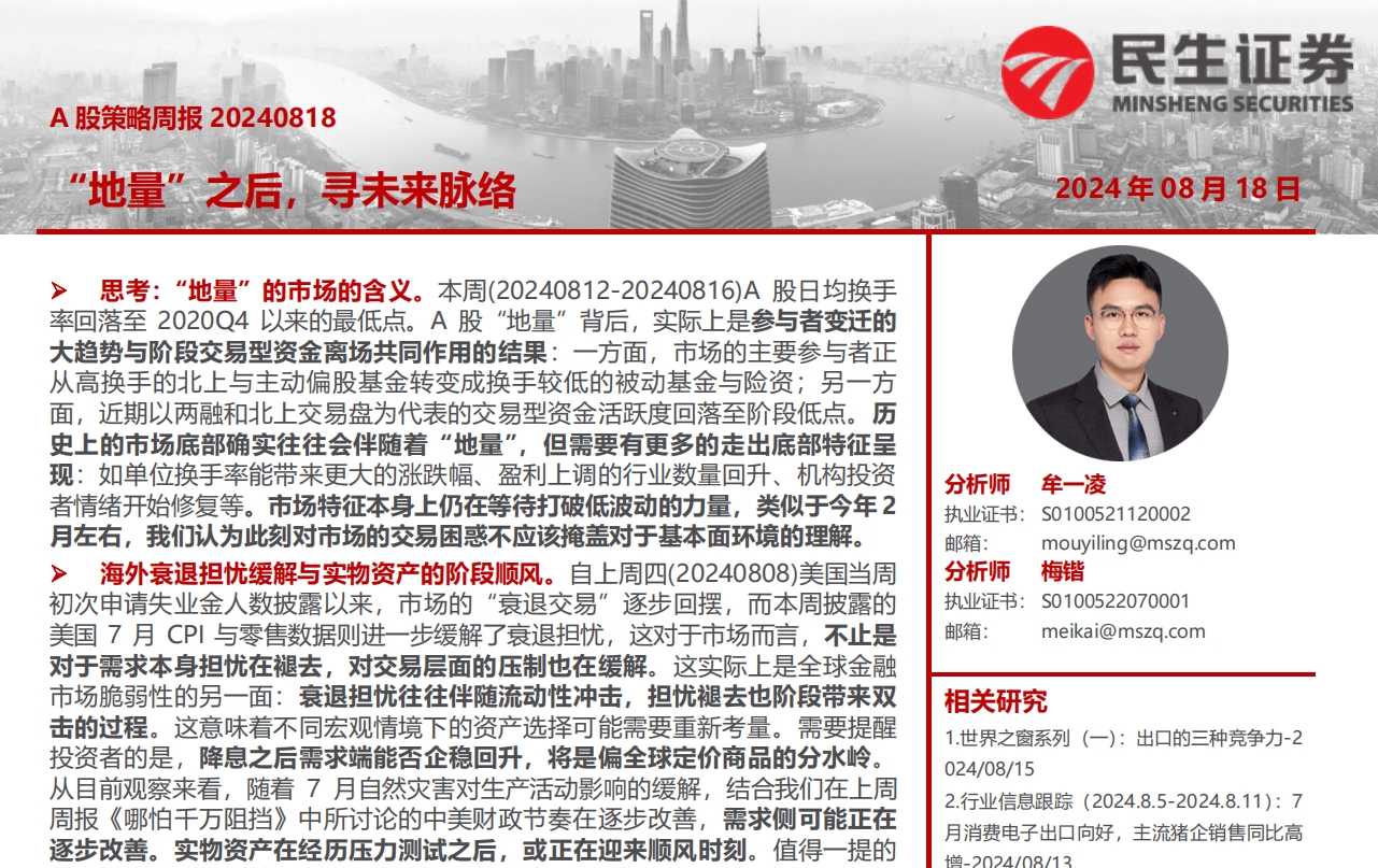 “地量”之后,寻未来脉络 2024 年 08 月 18 日