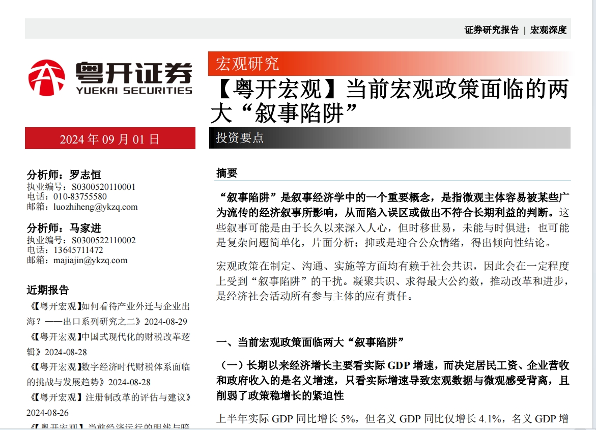 【粤开宏观】当前宏观政策面临的两 大“叙事陷阱”