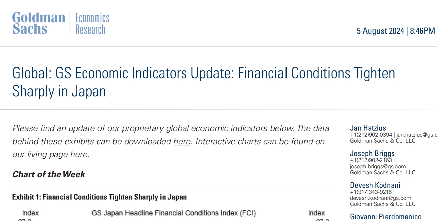 Global: GS Economic Indicators Update: Financial Conditions Tighten Sharply in Japan
