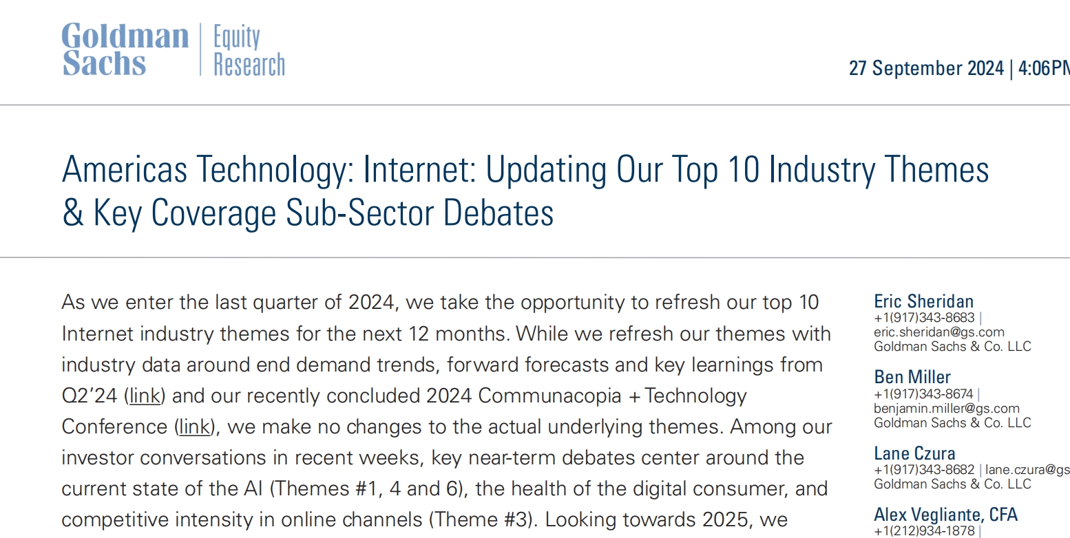 GS--Updating Our Top 10 Industry Themes & Key Coverage Sub-Sector Debates