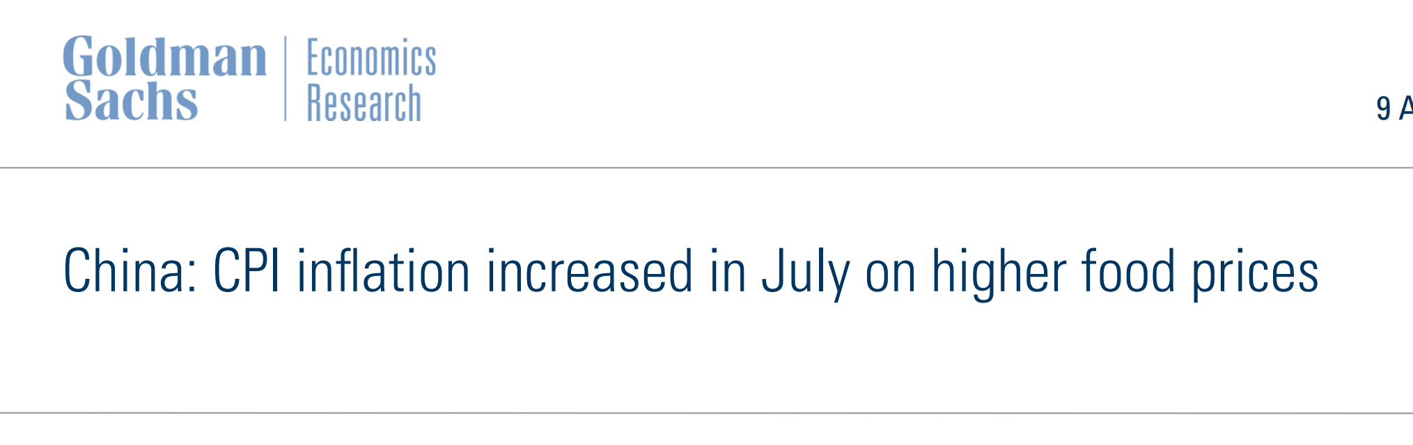 GS--中国:7月CPI通胀因食品价格上涨而上升