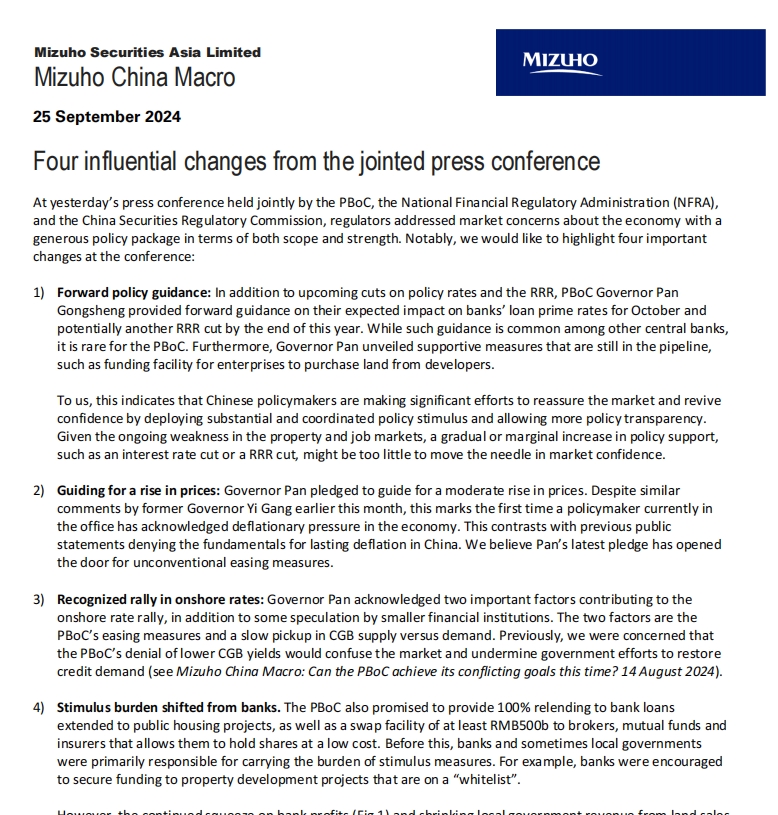 At yesterday’s press conference held jointly by the PBoC, the National Financial Regulatory Administration (NFRA), and the China Securities Regulatory Commission, regulators addressed market concerns about the economy with a