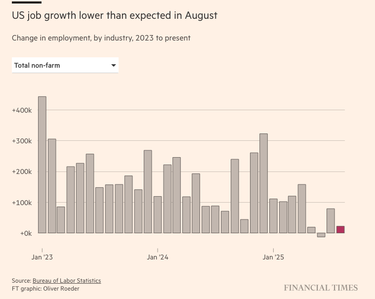 受特朗普关税影响的商品生产部门导致了上周令人沮丧的8月份就业报告的下滑,该报告显示,由于招聘放缓至涓涓细流,美国经济仅增加了22,000个就业岗位。