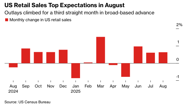 未经通胀调整的零售额在7月份类似增长后,再次增长0.6%。用于计算国内生产总值商品支出的控制组销售额增长0.7%,表明本季度经济状况良好。