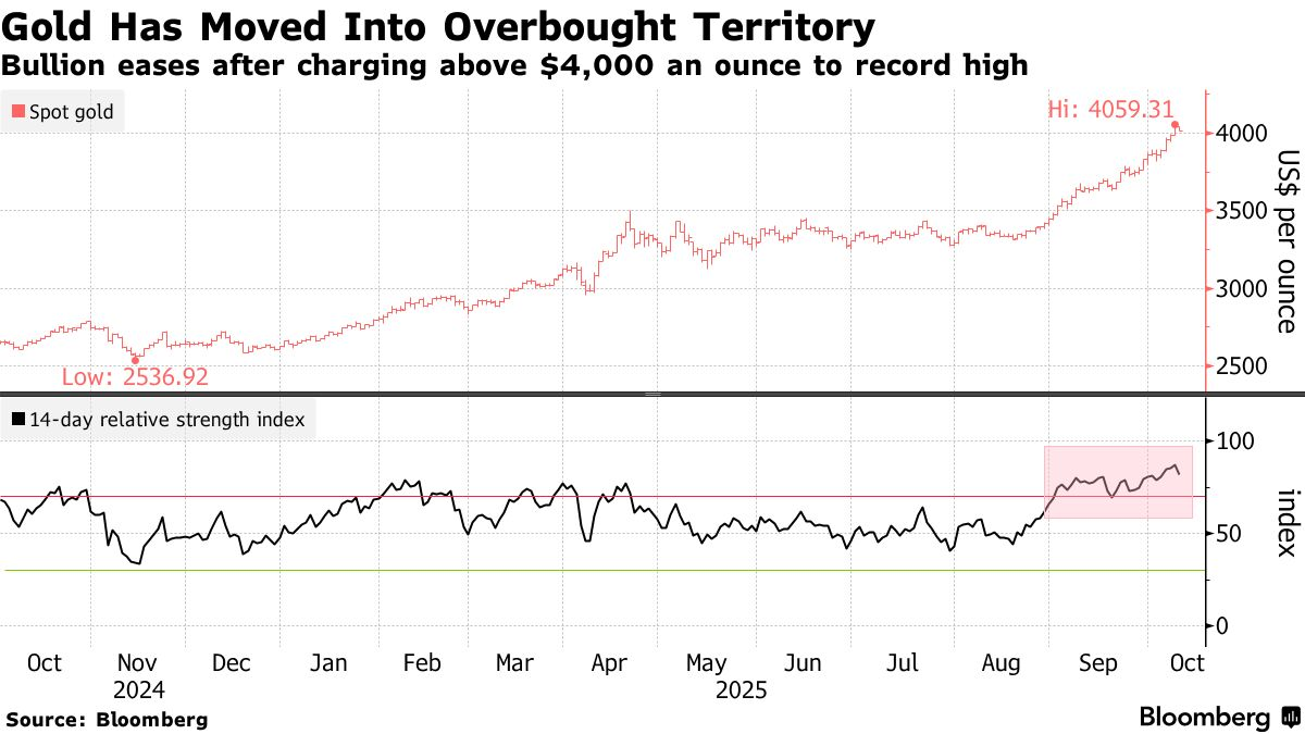 黄金价格跌回每盎司4000美元以下,白银价格也从1980年以来的最高水平回落,原因是美国股市走弱,投资者锁定利润。