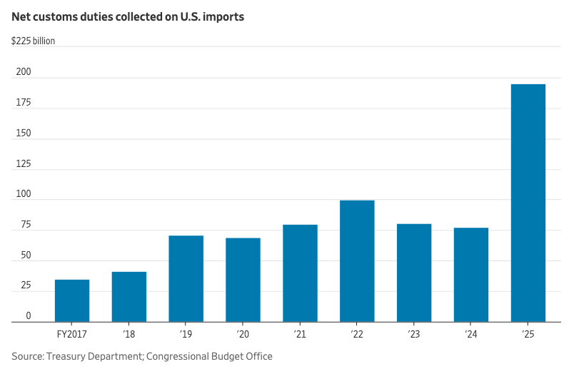 1. 关税带来了真金白银。