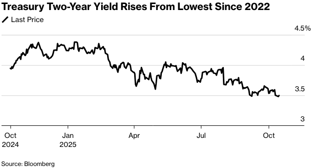 在推动两年期国债收益率跌至2022年以来最低水平的上涨之后,美国国债停滞不前。 黄金突破4200美元。
