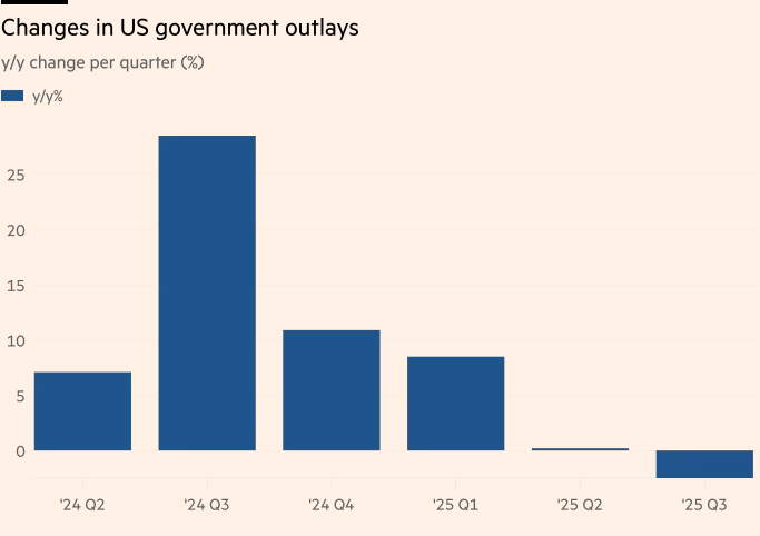 该估计显示,在截至6月的三个月内,即特朗普第二任期的第一个完整季度,政府支出比去年同期增长了0.2%。这一增幅远小于前四个季度,当时支出增长幅度在7.1%至28.5%之间。