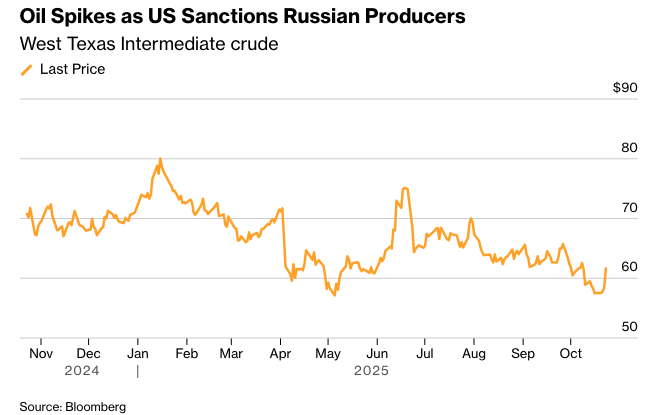 标普500指数接近历史高点,此前白宫表示,唐纳德·特朗普总统将于10月30日会见中国国家主席习近平。特斯拉抹去了财报公布后的跌幅,领涨大型股。由于美国宣布对俄罗斯最大的石油公司实施制裁,以结束乌克兰战争,能源股也加入了原油的上涨行列。