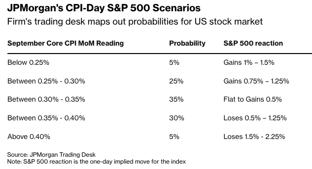 摩根大通交易部门认为,即使经济学家预计数据将居高不下,标普500指数在CPI数据发布后仍有大约65%的概率上涨。由Andrew Tyler带领的团队列出了CPI发布日股市的几种情景,这些情景“波动性低于往常”,投资者预计美联储将再次放松政策,这可能会抵消任何与通胀相关的担忧。