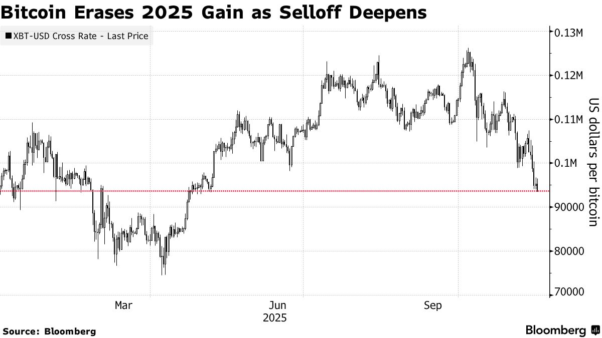 在经历了数周数据匮乏后,投资者们终于将获得有关美国经济健康状况的最新信号,各机构将开始发布关键指标,包括周四发布的九月份就业数据。交易员们也在应对各种风险——从人工智能相关股票的估值过高,到中日关系再次紧张。风险偏好正在减退,比特币跌破94,000美元,抹去了今年以来的涨幅。