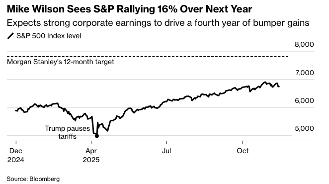原文链接:https://www.bloomberg.com/news/articles/2025-11-17/mike-wilson-is-among-top-stock-bulls-with-call-for-16-s-p-rally?srnd=phx-markets