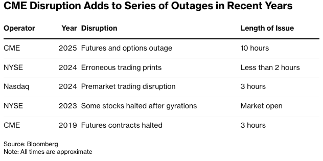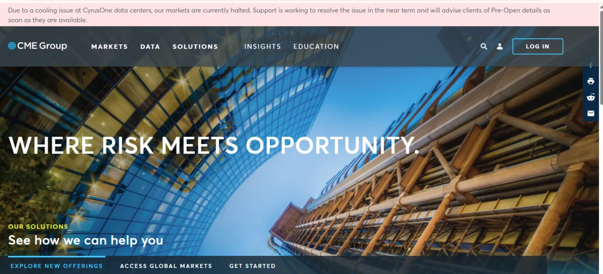 由于数据中心发生故障,期货和期权交易被暂停,波及多个市场,影响了价值数万亿美元的合约。