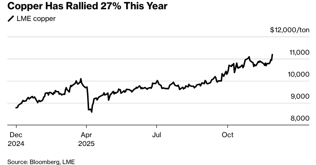 原文链接:https://www.bloomberg.com/news/articles/2025-11-28/copper-heads-for-weekly-gain-as-tightening-supply-drives-rally?srnd=phx-markets