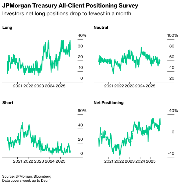 截至12月1日当周,投资者多头头寸下降9个百分点,空头头寸上升3个百分点。因此,净多头头寸降至11月3日以来的最低水平。
