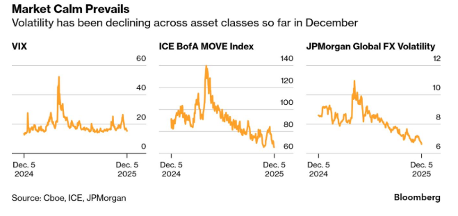 就在几周前,每一次投机波动都加剧了人们的担忧。加密货币暴跌,人工智能股票飙升后又回落,股票和信贷市场的波动性短暂飙升。但恐慌来得快,去得也快。现在,2025年交易的典型节奏又重新确立:低波动、高信念的风险资产押注,因为美国经济持续向前发展。