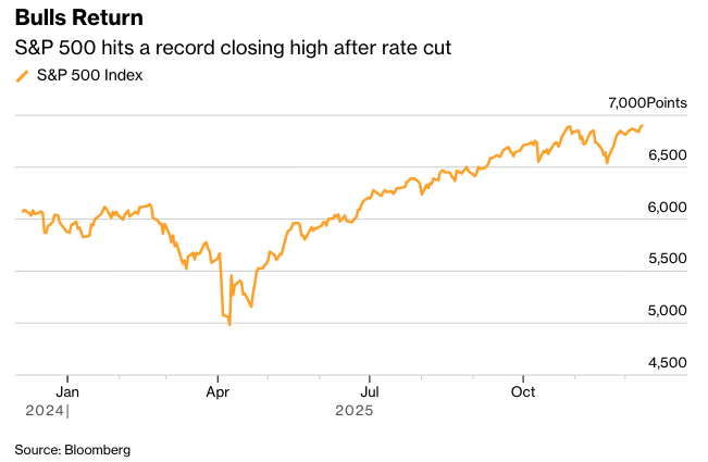 在美联储连续第三次降息之后,以及主席杰罗姆·鲍威尔乐观的经济前景下,投资者感到安心,因为美联储决策者为明年进一步宽松政策敞开了大门,尽管此次降息0.25个百分点的决定引发了三次异议。交易员坚持押注2026年降息两次,即使美联储的新预测仅预示着一次这样的行动。