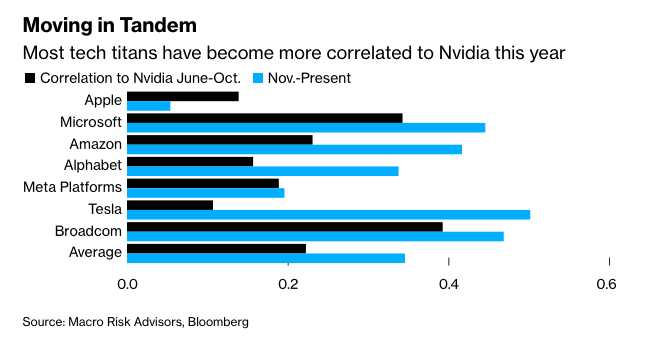 Macro Risk Advisors的创始人兼首席执行官Dean Curnutt表示,越来越集中的市场面临着“反身性风险”,尤其是在少数主导企业彼此之间的关联性越来越强的情况下。他认为,科技巨头“七巨头”——Alphabet Inc.、Amazon.com Inc.、Apple Inc.、Meta Platforms Inc.、Microsoft Corp.、Nvidia Corp. 和 Tesla Inc.——可能成为一个潜在的“循环收购团队”,其中“现金只是被循环利用,创造更多的市值收益”。