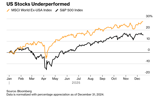 加拿大、英国、德国、西班牙、意大利、日本和香港的股票指数都跑赢了美国基准指数。策略师表示,这是美国政策不确定性造成的自我惩罚。