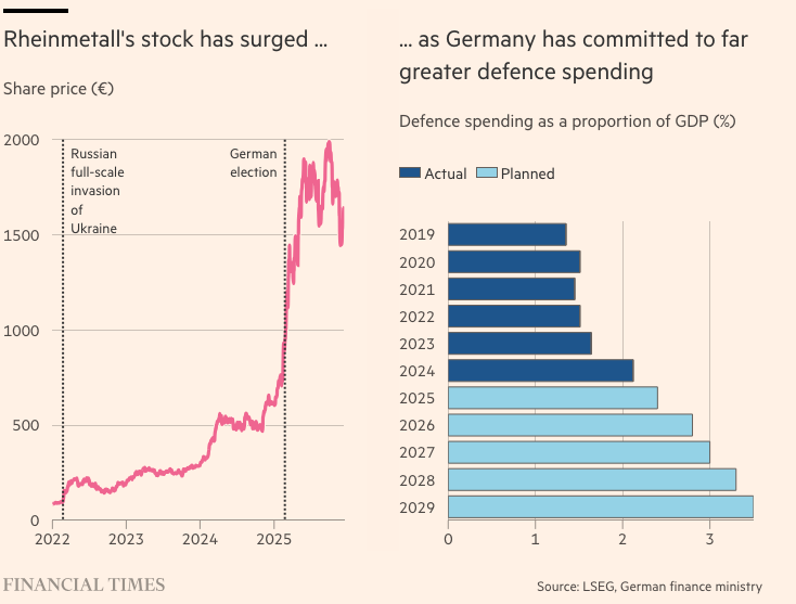 这家总部位于杜塞尔多夫的坦克和弹药制造商,自俄罗斯总统弗拉基米尔·普京全面入侵乌克兰以来,其股价飙升,仅今年就上涨了151%。