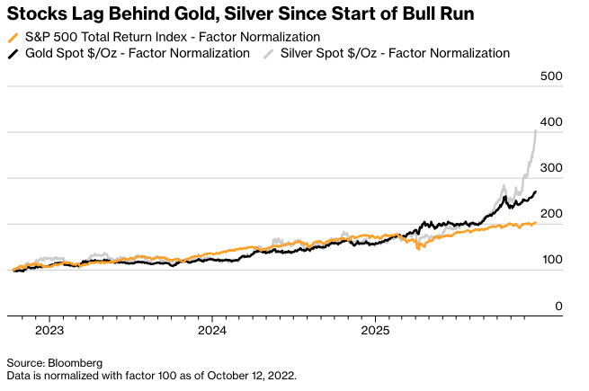 与此同时,在投机性交易和对供应短缺的担忧推动下,白银在突破每盎司 80 美元后暴跌超过 8%。黄金下跌超过 4%。