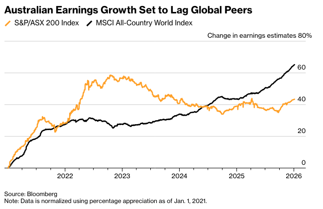 对于追逐澳大利亚资产收益的投资者来说,信息很明确:另寻他处。2025年,基准的S&P/ASX 200指数表现落后于同行,债券价格也因央行考虑重新收紧货币政策而下跌。