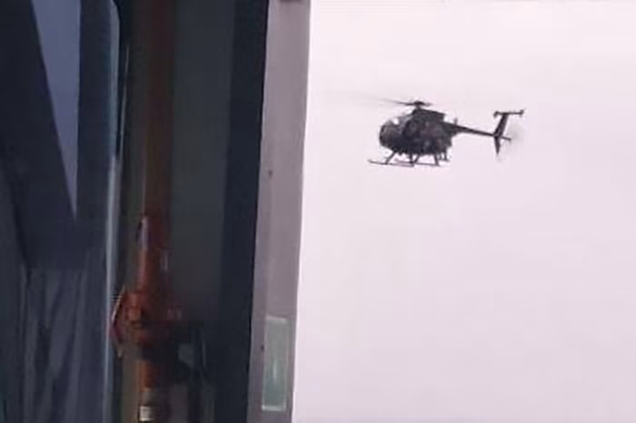 据称,俄罗斯国家电视台周三播放的一张图片显示,一架美国直升机试图拦截“Marinera © RT”号油轮。