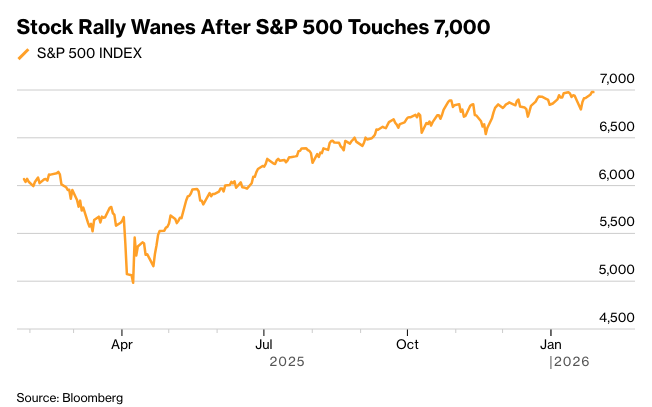 债券几乎没有波动。在科技股领涨推动标普500指数短暂突破7000点后,股市涨幅消退。在收盘时段,Meta Platforms Inc.因看涨前景而上涨。特斯拉公司因利润超出预期而攀升。微软公司因创纪录的支出引发了对其人工智能投资回报需要比预期更长时间的担忧而下跌。