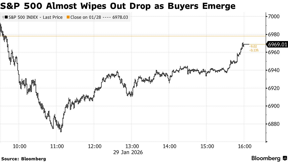由于对前所未有的人工智能支出是否能证明所有资本投入的合理性感到担忧,华尔街在触及盘中低点后出现大幅反弹,逢低买入者入场。大宗商品市场波动剧烈,黄金暴跌,而石油价格飙升。比特币跌破 85,000 美元。