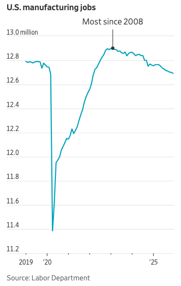 联邦数据显示,在特朗普公布“解放日”关税后的八个月里,制造业都出现了工人流失,延续了自2023年以来超过20万个岗位消失的萎缩趋势。