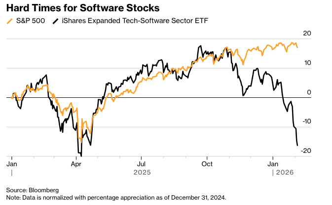 “现在,投资者并没有问自己价值在哪里,”他说。“相反,他们正在抛售所有软件股——即使该领域的许多顶级公司表现良好。”