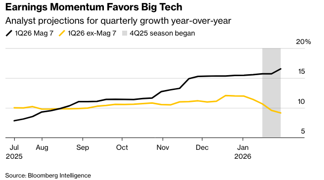 “大规模抛售科技股的问题在于,长期来看,缺乏根本性理由。轮动叙事在本季度获得了一些支撑,但根据盈利结果来看,越来越显得牵强。”