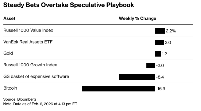 原文链接:https://www.bloomberg.com/news/articles/2026-02-06/wall-street-drama-punishes-speculation-and-rewards-steady-bets?srnd=phx-markets
