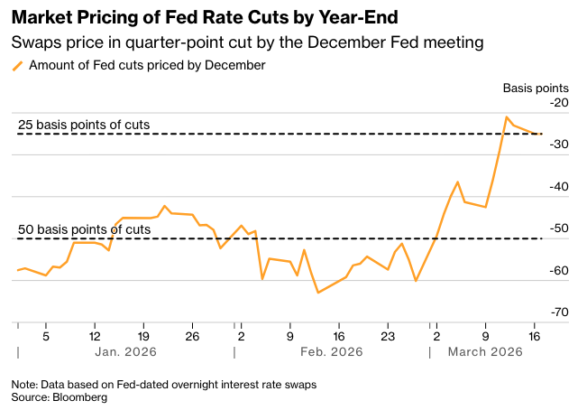 原文链接: https://www.bloomberg.com/news/articles/2026-03-17/traders-dial-back-bets-against-fed-cuts-as-growth-worries-build?srnd=phx-markets