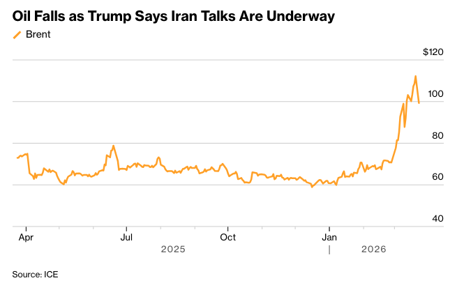 布伦特原油一度下跌超过14%,随后收窄跌幅,因伊朗否认了相关会谈,但最终收于100美元以下。标普500指数上涨约1%。债券收益率和美元回落,交易员减少了对美联储更加鹰派的押注,预计今年将降息几个基点。