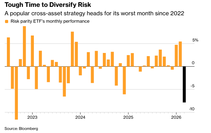 多年来,追求多元化投资的投资者一直感到痛苦。但这场战争生动地证明,债券、黄金、波动率交易和加密货币都可能同时失灵——横跨军事升级、美中贸易摩擦和鹰派央行重新定价。