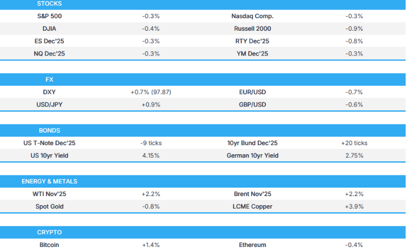 标普500指数(SPX)下跌0.28%,报6,638点;纳斯达克100指数(NDX)下跌0.31%,报24,504点;道琼斯工业平均指数(DJI)下跌0.37%,报46,121点;罗素2000指数(RUT)下跌0.92%,报2,435点。