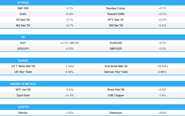 标普500指数(SPX)下跌0.10%,报6,840点;纳斯达克100指数(NDX)上涨0.16%,报25,669点;道琼斯工业平均指数(DJI)下跌0.37%,报47,561点;罗素2000指数(RUT)上涨0.24%,报2,527点。