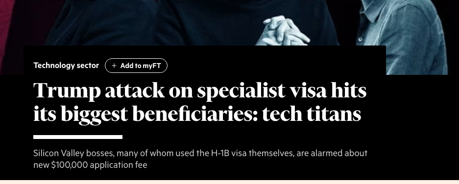 FT :Trump attack on specialist visa hits its biggest beneficiaries: tech titans