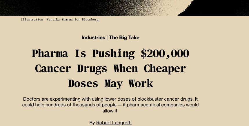 Bloomberg :Pharma Is Pushing $200,000 Cancer Drugs When Cheaper Doses May Work
