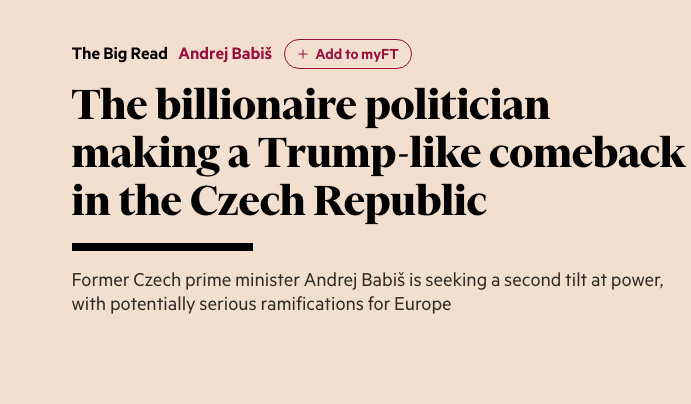 FT:The billionaire politician making a Trump-like comeback in the Czech Republic