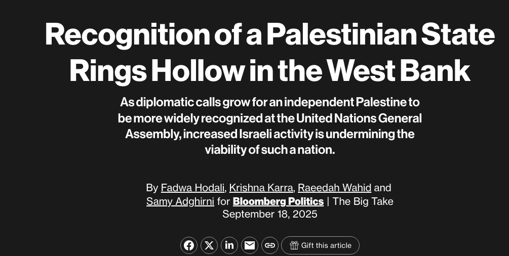 Bloomberg:Recognition of a Palestinian State Rings Hollow in the West Bank