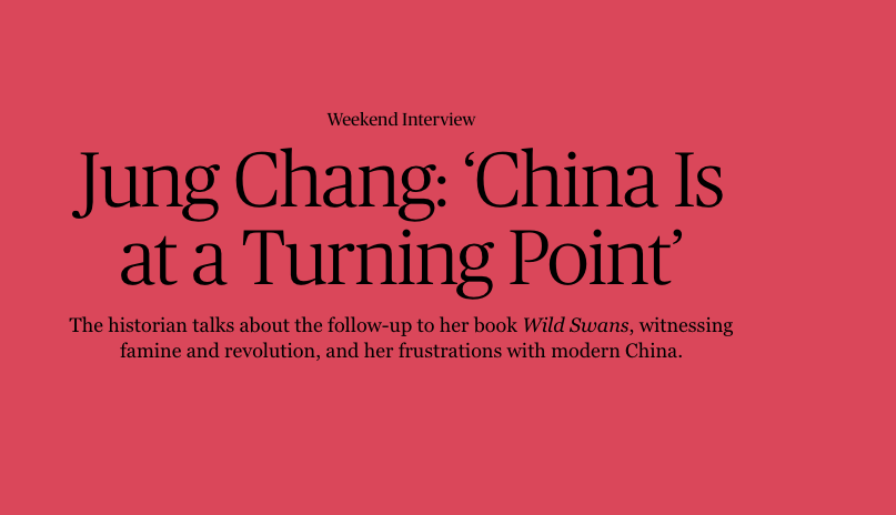 Bloomberg:Jung Chang: ‘China Is at a Turning Point’