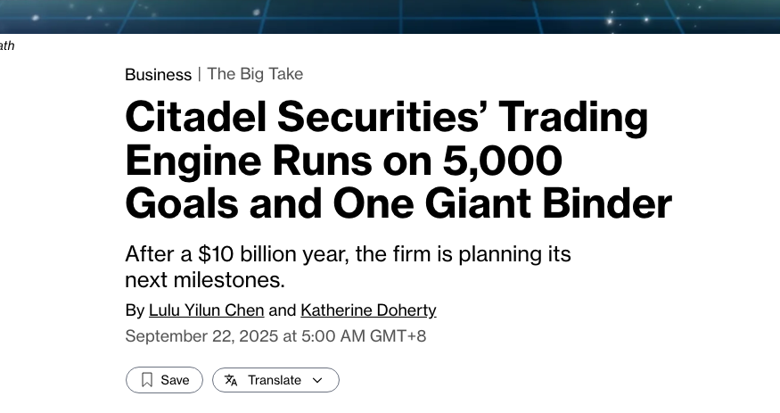 Bloomberg :Citadel Securities’ Trading Engine Runs on 5,000 Goals and One Giant Binder