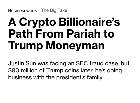 Bloomberg :A Crypto Billionaire’s Path From Pariah to Trump Moneyman