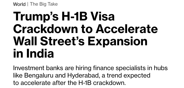Bloomberg :Trump’s H-1B Visa Crackdown to Accelerate Wall Street’s Expansion in India
