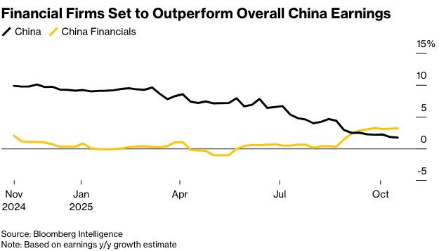 原文链接:https://www.bloomberg.com/news/articles/2025-10-29/chinese-financials-earnings-growth-set-to-outpace-wider-market?srnd=homepage-americas