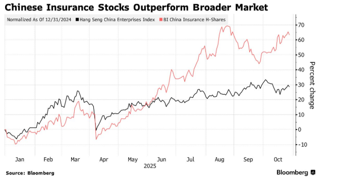 投资者一直在押注该子行业的良好业绩。在香港上市的中国保险公司指数今年已上涨63%,是恒生中国企业指数涨幅的两倍多。
