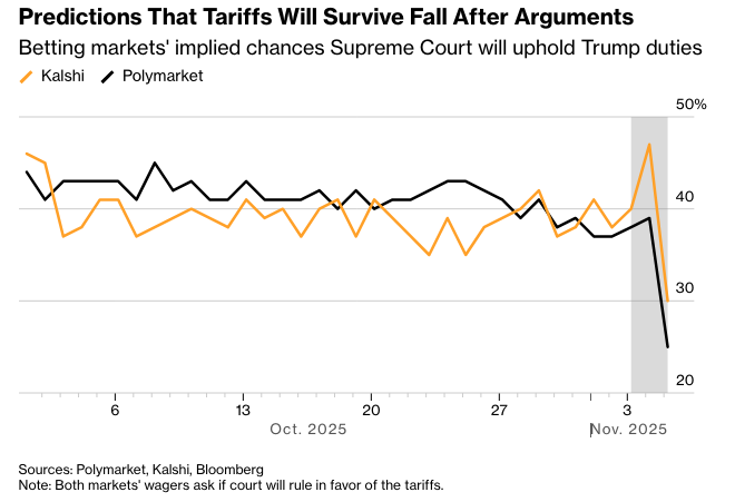 原文链接:https://www.bloomberg.com/news/articles/2025-11-05/justices-question-legality-of-trump-s-tariffs-at-supreme-court?srnd=homepage-americas